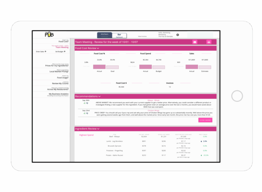 Orderly automatically reviews your food cost and sends recommendations based on a variety of factors: